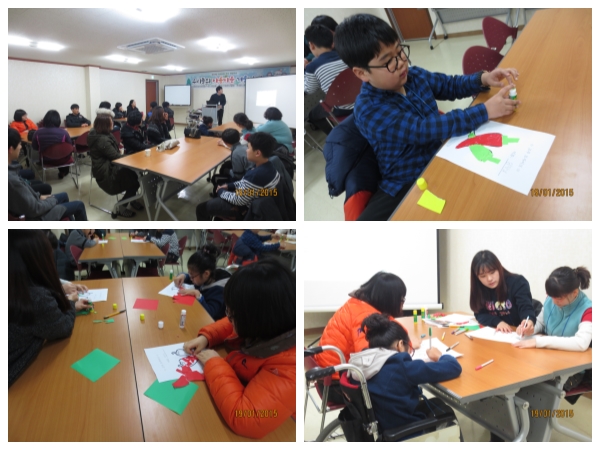 2015년 장애아동현장체험 1회기인 "우리들의 아름다운 겨울나기" 가 시작되었습니다.^^ 총 5회기에 거쳐 매일 다른 주제의 프로그램내용으로 진행 될 예정입니다.^^