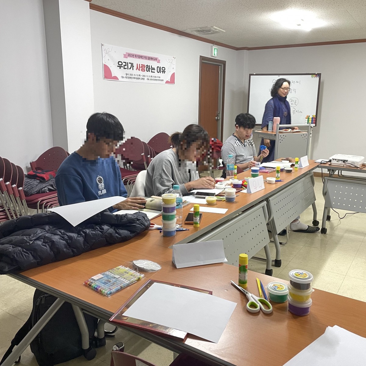 2023년 결혼예비교육 '우리가 사랑하는 이유' 프로그램 최고관리자 0 1224 2023.11.16 18:02 2023년 10월~12월 진행된 결혼예비교육 '우리가 사랑하는 이유' 프로그램 사진입니다.