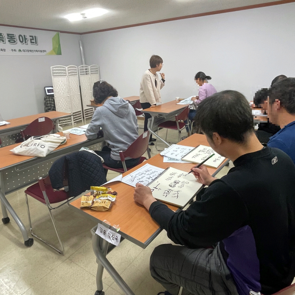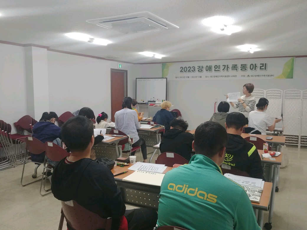 2023년 장애인가족동아리프로그램(캘리그라피 동아리) 내 맘을 담아 최고관리자 0 1050 2024.02.19 10:48 2023년 10월~12월 진행된 장애인가족동아리프로그램(캘리그라피 동아리) '내 맘을 담아' 프로그램 사진입니다. 매해 프로그램 계획에 따라 진행 일정은 달라질 수 있어 이용 희망시 참고 부탁드립니다!